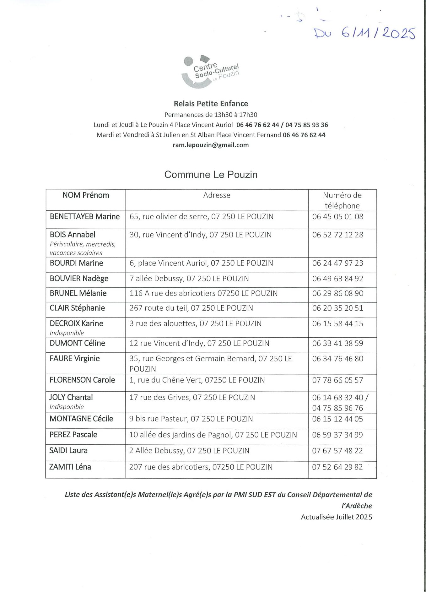 Relais d’assistantes maternelles, multi-accueil intercommunal, garderie périscolaire… Les parents qui souhaitent faire garder leurs jeunes enfants sur la commune de Le Pouzin peuvent avoir recours à ces trois possibilités. Pour chacune d’entre elles, retrouvez les lieux, horaires, tarifs et contacts utiles.